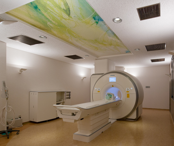 MRI(Magnetic Resonance Imagingの略)は、強い磁力と高周波電波を用い、その結果得られる体内の水(水素原子)の信号をコンピュータ解析することで体の中の様子を探る医療機器です。CTと異なりX線を用いずに画像が得られる利点があります。病変部を含む体内臓器の構造や部位および性状の把握ができます。