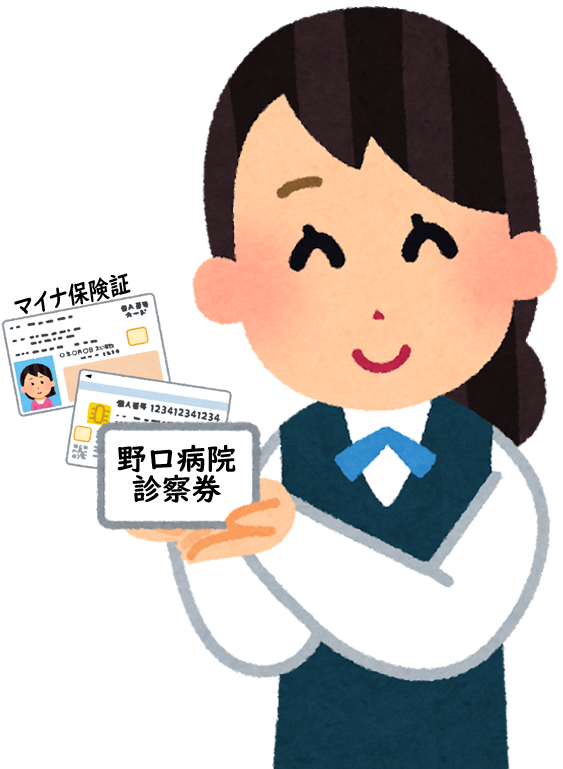 診察券とマイナ保険証(健康保険証)を確認させていただきます。